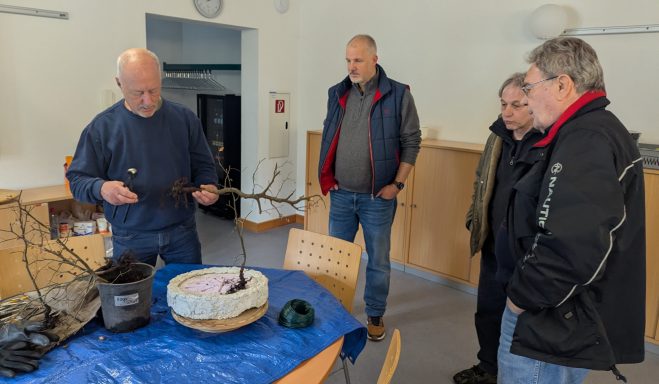 Der Start ins Jahr 2025 begann mit Diskusionen um Dietmars Lärche. In der JHV wurden die Termine des Jahres festgelegt. Wichtig: Diese können je nach Wetter oder anderen Gründen verschoben werden. Das wird dann Zeitnah bekannt gegeben. Im Terminplaner wurden auch Ausstellungen aufgenommen. Nach Beendigung der JHV ging es wieder zur Lärche und möglichen Veränderungen. Auch Egors Fikus wurden besprochen. Es war ein guter wieder sehr informativer Start ins neue Jahr.
