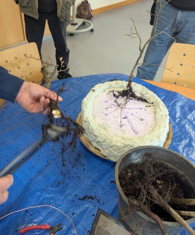 Beim letzten Treffen 2025 in Spay wurden auf Anregung von Marco bei den mitgebrachten Bäumen die einzelnen Schritte zur Gestaltung und deren Reihenfolge diskutiert.
