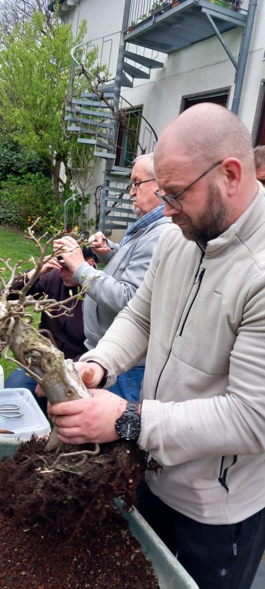 Der filigranen Bearbeitung einer koreanischen Hainbuche widmete Marco sich sehr intensiv und an Hand der gegen Ende des Treffens entstandenen Silhouette ergab sich eine tolle Leistung und weitere Verbesserung des Baumes.